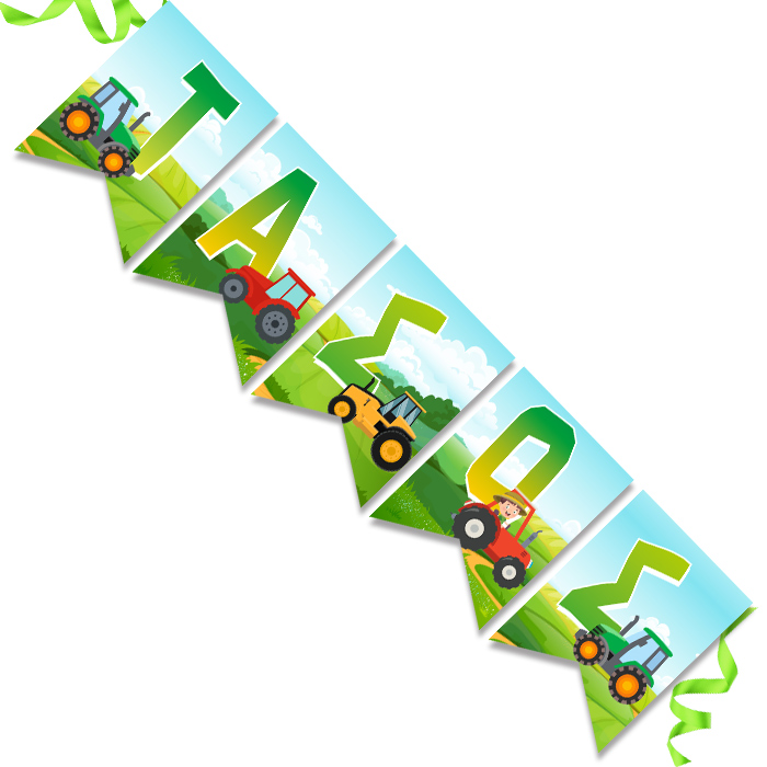 Διακοσμητικά σημαιάκια με το όνομα της μικρής σου και θέμα Τρακτέρ!