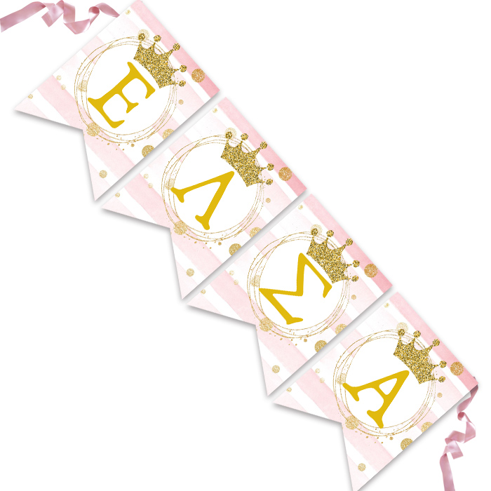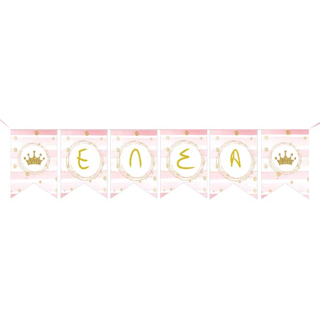 Σημαιάκια με το όνομα του μωρού σας και θέμα πριγκιπική Κορώνα, για να διακοσμήσετε το χώρο της βάπτισης!