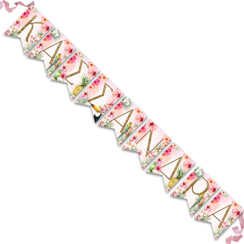 Διακοσμητικά σημαιάκια με το όνομα του παιδιού και θέμα Tropical Ιβίσκος!