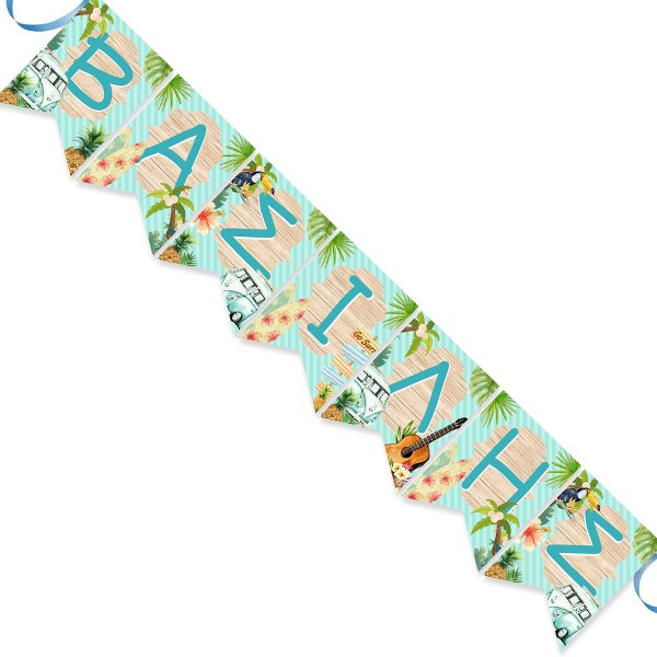 Διακοσμητικά σημαιάκια με το όνομα του παιδιού και θέμα Tropical – Aloha!