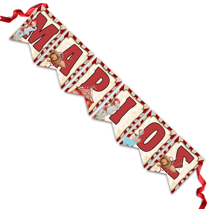 Διακοσμητικά σημαιάκια με το όνομα του παιδιού και θέμα Τσίρκο!