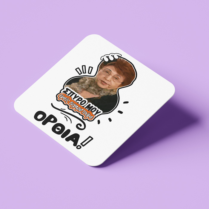 Ξύλινο σουβέρ για να ακουμπάς την κούπα σου, με την πολυαγαπημένη Θεοπούλα από την ελληνική σειρά στο Παρά 5 με την ατάκα ΟΡΘΙΑ.