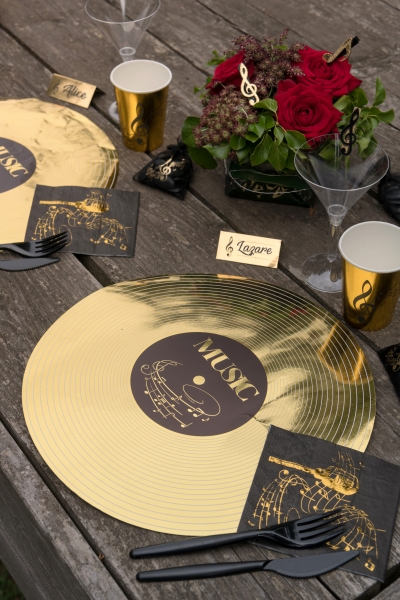 Εντυπωσιακό σουπλά τραπεζιού με σχέδιο χρυσό/πλατινένιο δίσκο μουσικής, για ένα υπέροχο στολισμό στη μουσική εκδήλωση, στο ωδείο, στο θεματικό πάρτυ!