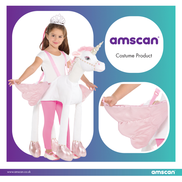 - Ολόσωμη φόρμα μονόκερου με ρυθμιζόμενες τιράντες και ροζ λεπτομέρειες, όπως η χαίτη και τα φτερά.