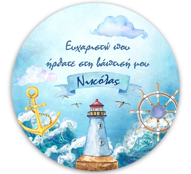 Στρογγυλή αφίσα με Ναυτικό θέμα και εκτυπωμένο το μήνυμα που θέλετε, για να διακοσμήσετε το χώρο της βάπτισης του μωρού σας!