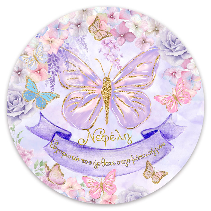 Στρογγυλή Αφίσα Βάπτισης Πεταλούδα