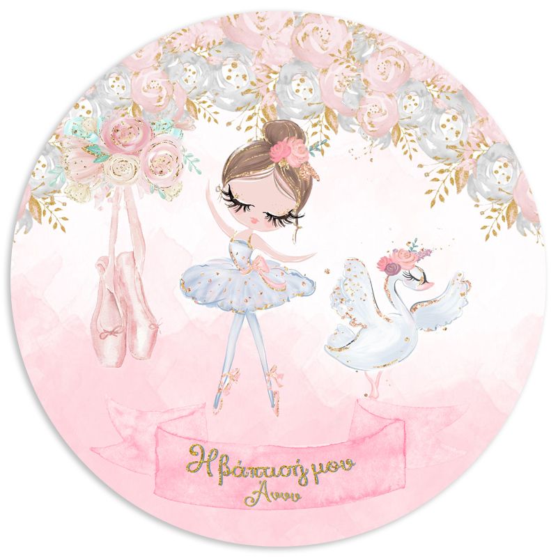 Στρογγυλή αφίσα με θέμα Μπαλαρίνα & Κύκνος και εκτυπωμένο το μήνυμα που θέλετε, για να διακοσμήσετε το χώρο του πάρτυ ή της βάπτισης του μωρού σας!