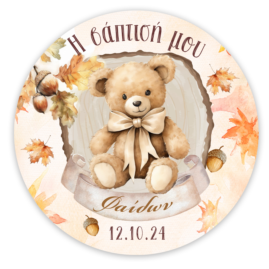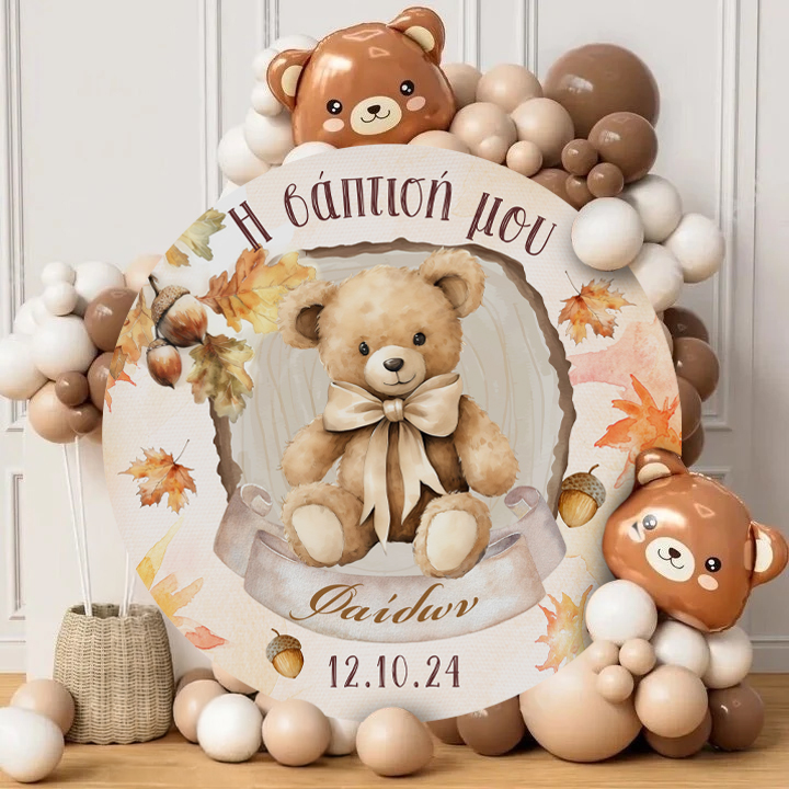 Στρογγυλή Αφίσα Φθινοπωρινή Βάπτιση Αρκουδάκι 1,30μ.