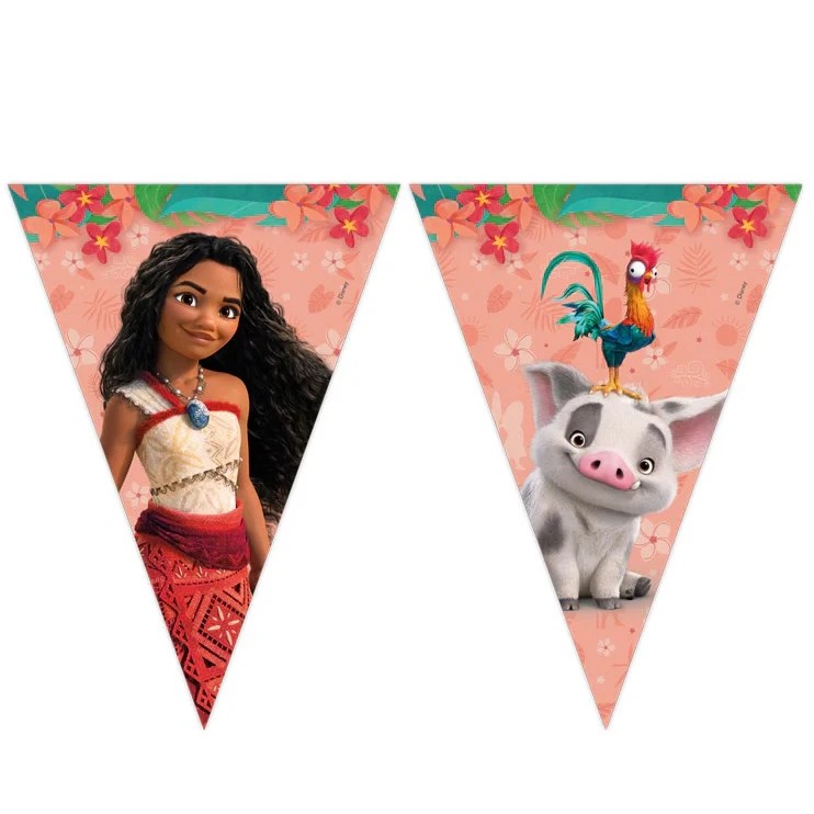 Τρίγωνη χάρτινη γιρλάντα με θέμα τη Moana 2, ιδανική για να διακοσμήσεις το πάρτι και να δώσεις χρώμα και ζωντάνια στον χώρο!