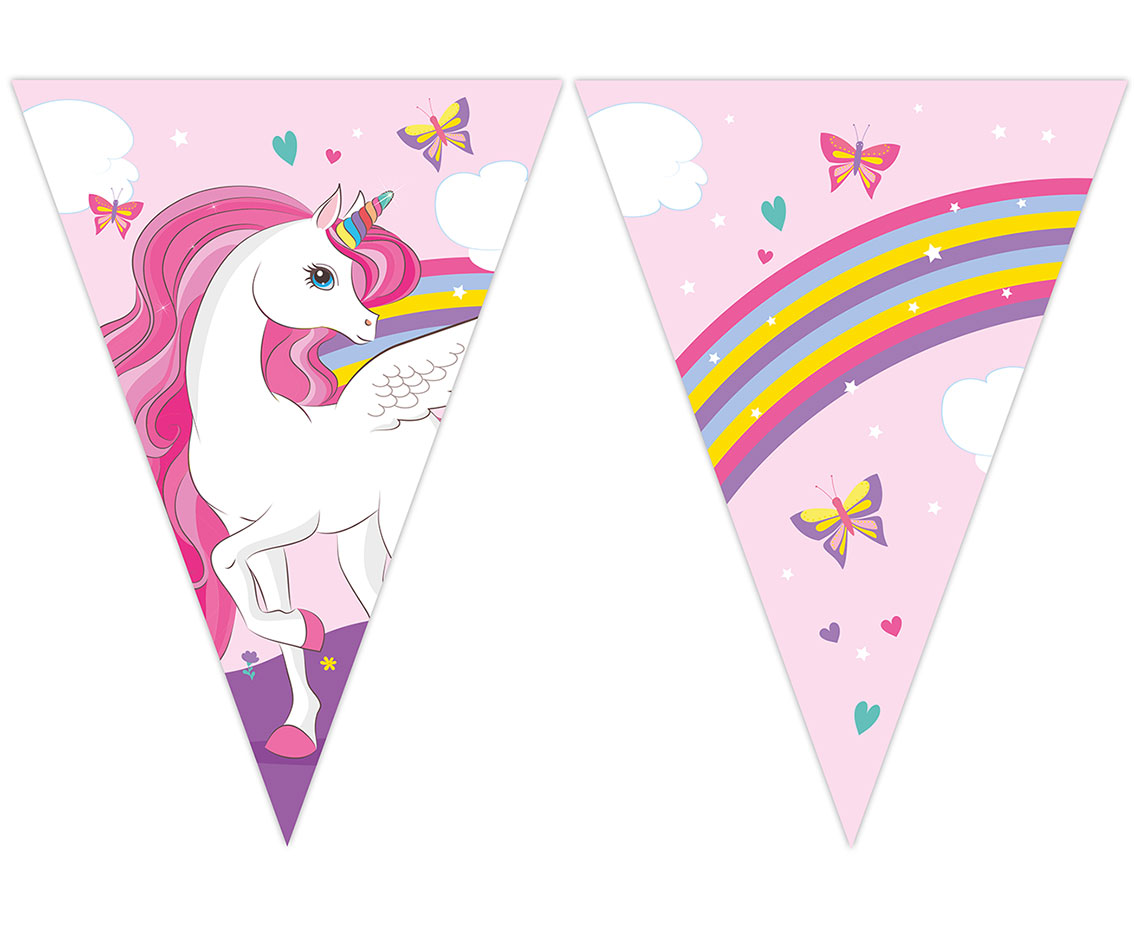 Διακοσμήστε το χώρο για το πάρτυ, με τριγωνικά σημαιάκια Μονόκερος και δημιουργήστε μία γιορτινή ατμόσφαιρα!