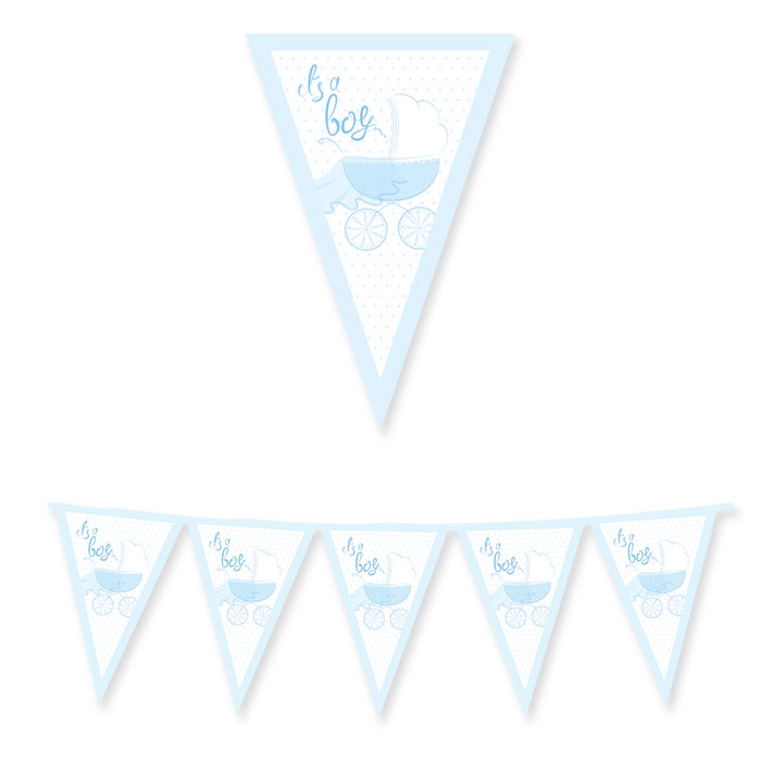 Τριγωνικά σημαιάκια με το μήνυμα It’s a Boy! — η πιο χαριτωμένη διακόσμηση για το baby shower ή για την υποδοχή του νεογέννητου στο σπίτι.