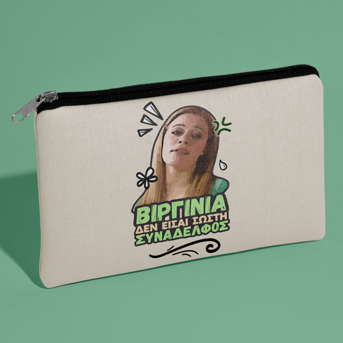 Τσαντάκι – νεσεσέρ για να κρατάς με την πολυαγαπημένη Αμαλία από την ελληνική σειρά στο Παρά 5 με την ατάκα ΒΙΡΓΙΝΙΑ.
