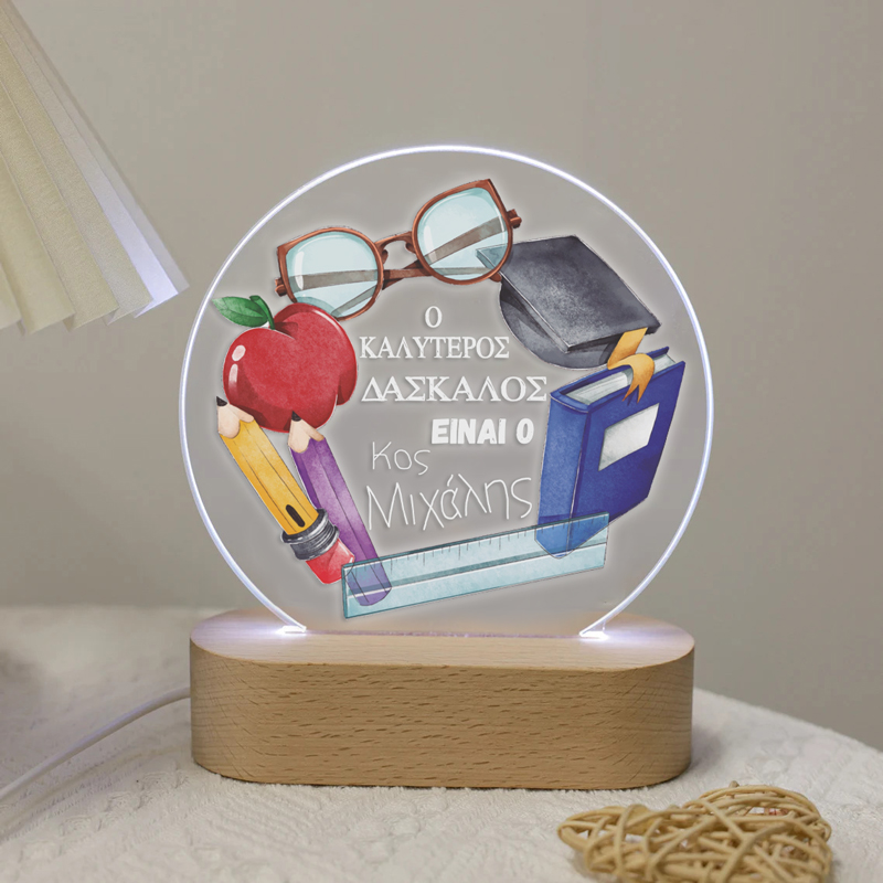 Προσωποποιημένο φωτιστικό με σχέδιο σχετικό με σχολικά είδη και μήνυμα για τον καλύτερο δάσκαλο! Ένα πρωτότυπο δώρο για να χαρίσεις στον αγαπημένο σου δάσκαλο. Θα διακοσμεί το δωμάτιο και θα σε θυμίζει!