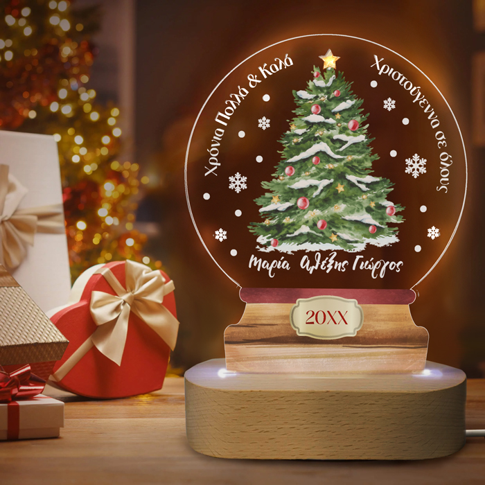 Εντυπωσιακό προσωποποιημένο φωτιστικό led με το χριστουγεννιάτικο δέντρο και τις πιο όμορφες ευχές χαραγμένες επάνω για να χαρίσεις το πιο πρωτότυπο χριστουγεννιάτικο δώρο!