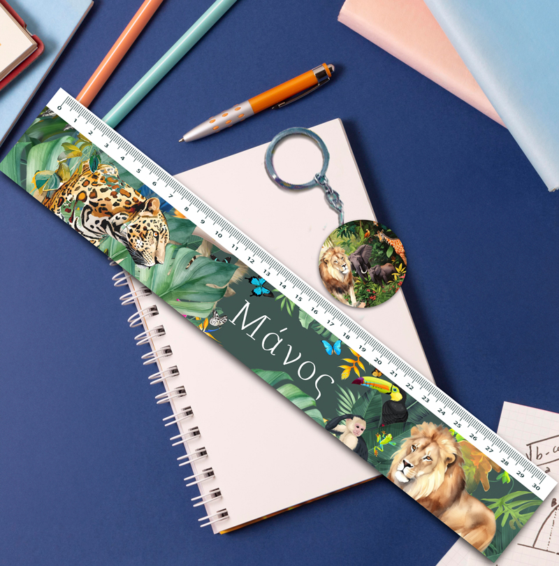 Προσωποποιημένος χάρακας Ζώα της Ζούγκλας με το όνομα και ασορτί μπρελόκ! To πιο τέλειο αξεσουάρ για το σχολείο ή το φροντιστήριο!