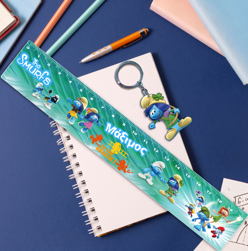 Προσωποποιημένος χάρακας Στρουμφάκια από τη νέα ταινία με το όνομα και ασορτί μπρελόκ! To πιο τέλειο αξεσουάρ για το σχολείο ή το φροντιστήριο!