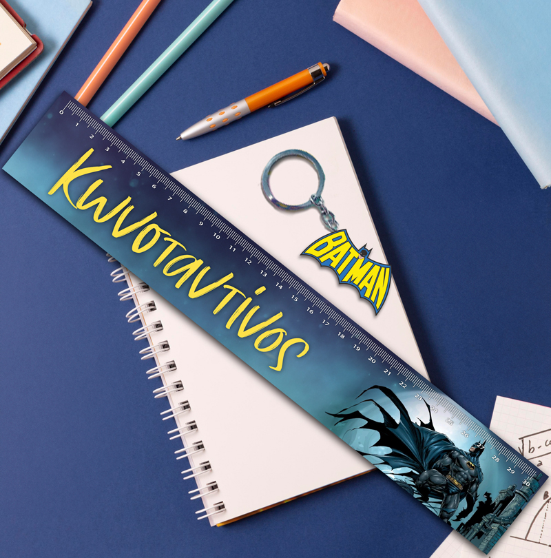 Προσωποποιημένος χάρακας Batman με το όνομα και ασορτί μπρελόκ! To πιο τέλειο αξεσουάρ για το σχολείο ή το φροντιστήριο!