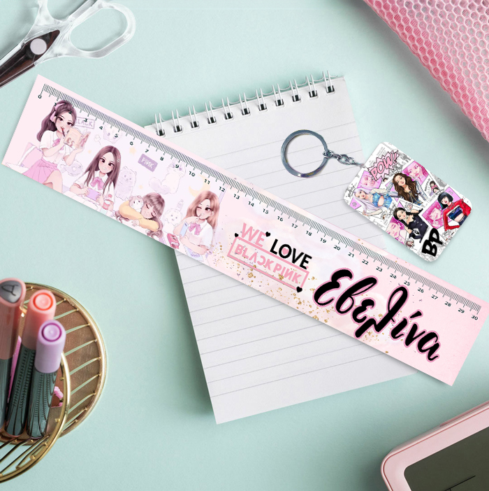 Προσωποποιημένος χάρακας Blackpink Comic Art με το όνομα και ασορτί μπρελόκ! To πιο τέλειο αξεσουάρ για το σχολείο ή το φροντιστήριο!