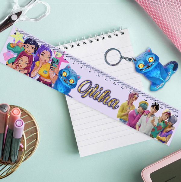 Προσωποποιημένος χάρακας K-Pop Demon Hunters με μπρελόκμε το όνομα και ασορτί μπρελόκ! To πιο τέλειο αξεσουάρ για το σχολείο ή το φροντιστήριο!