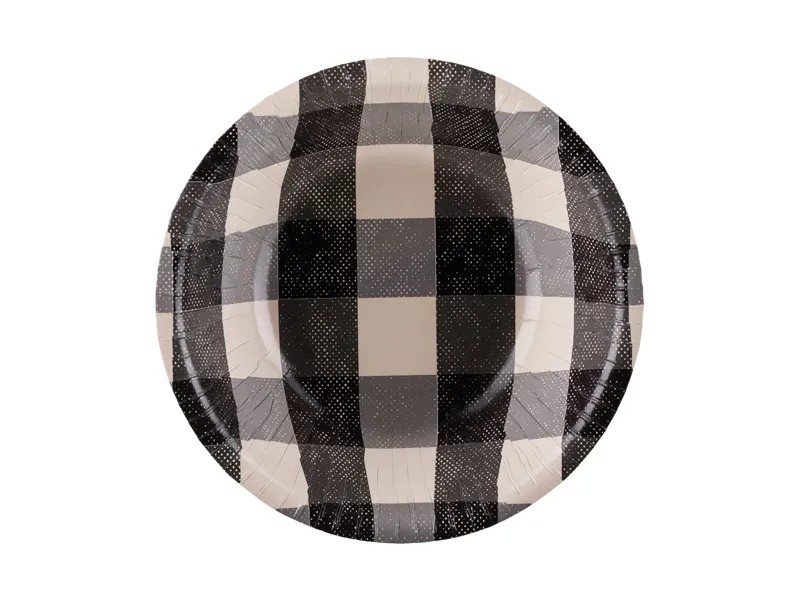 Χάρτινο μπολ σερβιρίσματος με καρό σχέδιο σε μαύρο και λευκό χρώμα, ιδανικό για πάρτι, πικνίκ και θεματικές εκδηλώσεις.