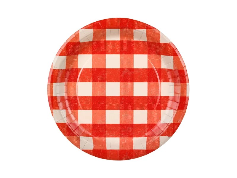 Χάρτινο πιάτο με καρό σχέδιο σε κόκκινο και λευκό χρώμα, ιδανικό για πάρτι, πικνίκ και θεματικές εκδηλώσεις. Ο κλασικός καρό σχεδιασμός θυμίζει παραδοσιακό τραπεζομάντηλο πικνίκ και δίνει μια χαρούμενη και ζεστή ατμόσφαιρα στη διακόσμηση του τραπεζιού.