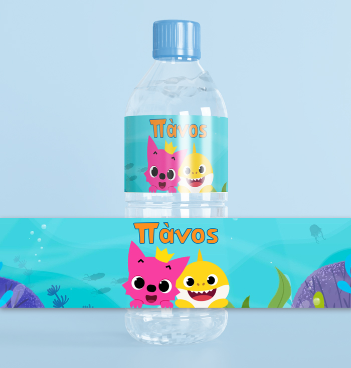 Στο πάρτι σας δεν θα υπάρχει απλό νεράκι.. Αλλά μπουκαλάκια με τα αγαπημένα Καρχαριάκια και το όνομα του παιδιού σας!