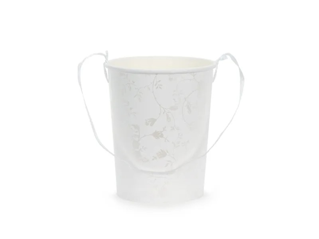 Απαλό, ρομαντικό και ιδανικό για κάθε ξεχωριστή στιγμή! Αυτό το χάρτινο κουβαδάκι είναι σχεδιασμένο για να κρατά ροδοπέταλα, αποξηραμένα άνθη ή μικρές λιχουδιές, και είναι ιδανικό για παρανυφάκια, γάμους, βαπτίσεις ή στολισμό τραπεζιού.