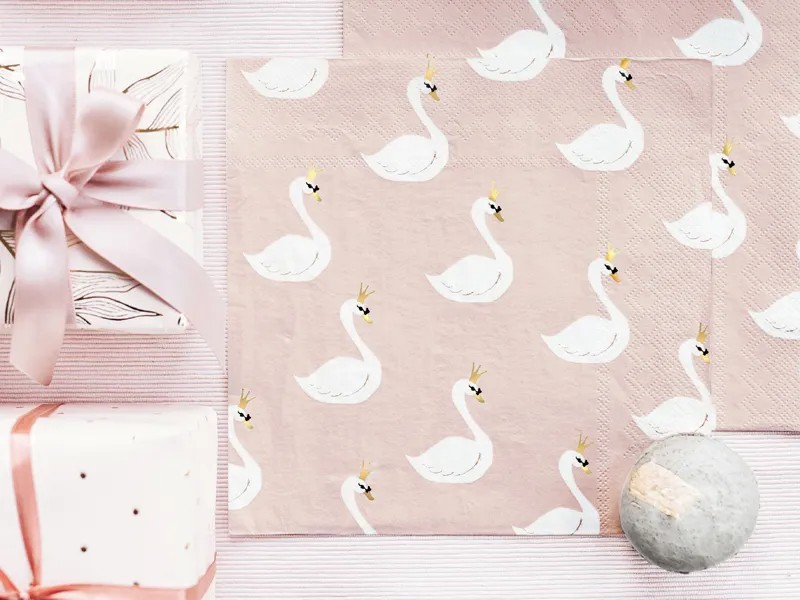 Rosegold χαρτοπετσέτες φαγητού με κύκνο και χρυσές λεπτομέρειες, για το τραπέζι του πάρτυ!