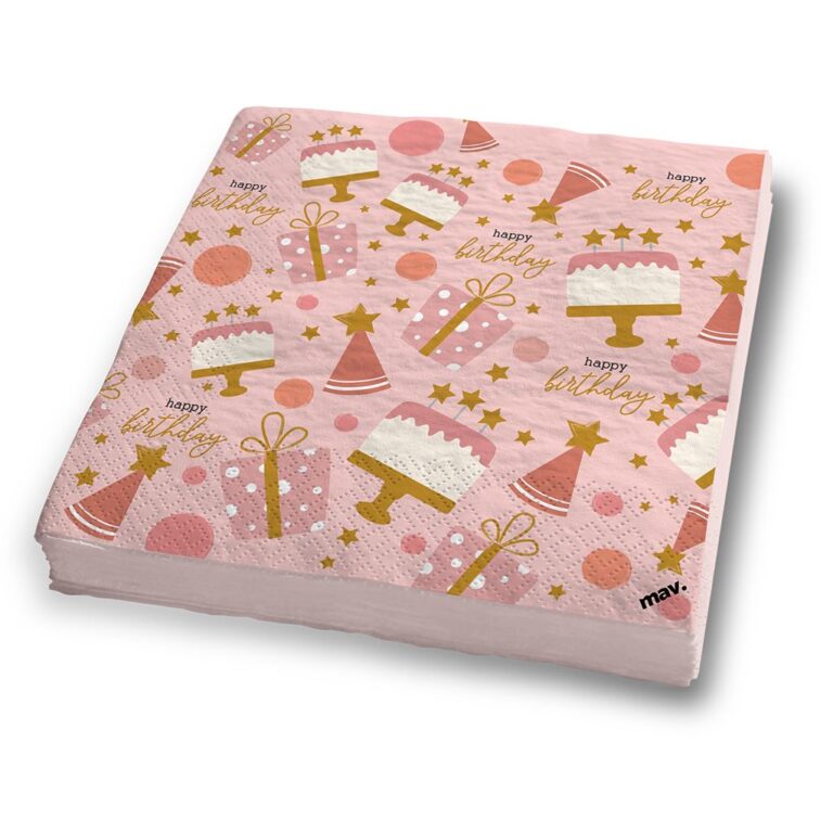 Χαρτοπετσέτες Rose Confetti με τούρτες και δώρα, για το τραπέζι στο πάρτυ γενεθλίων!