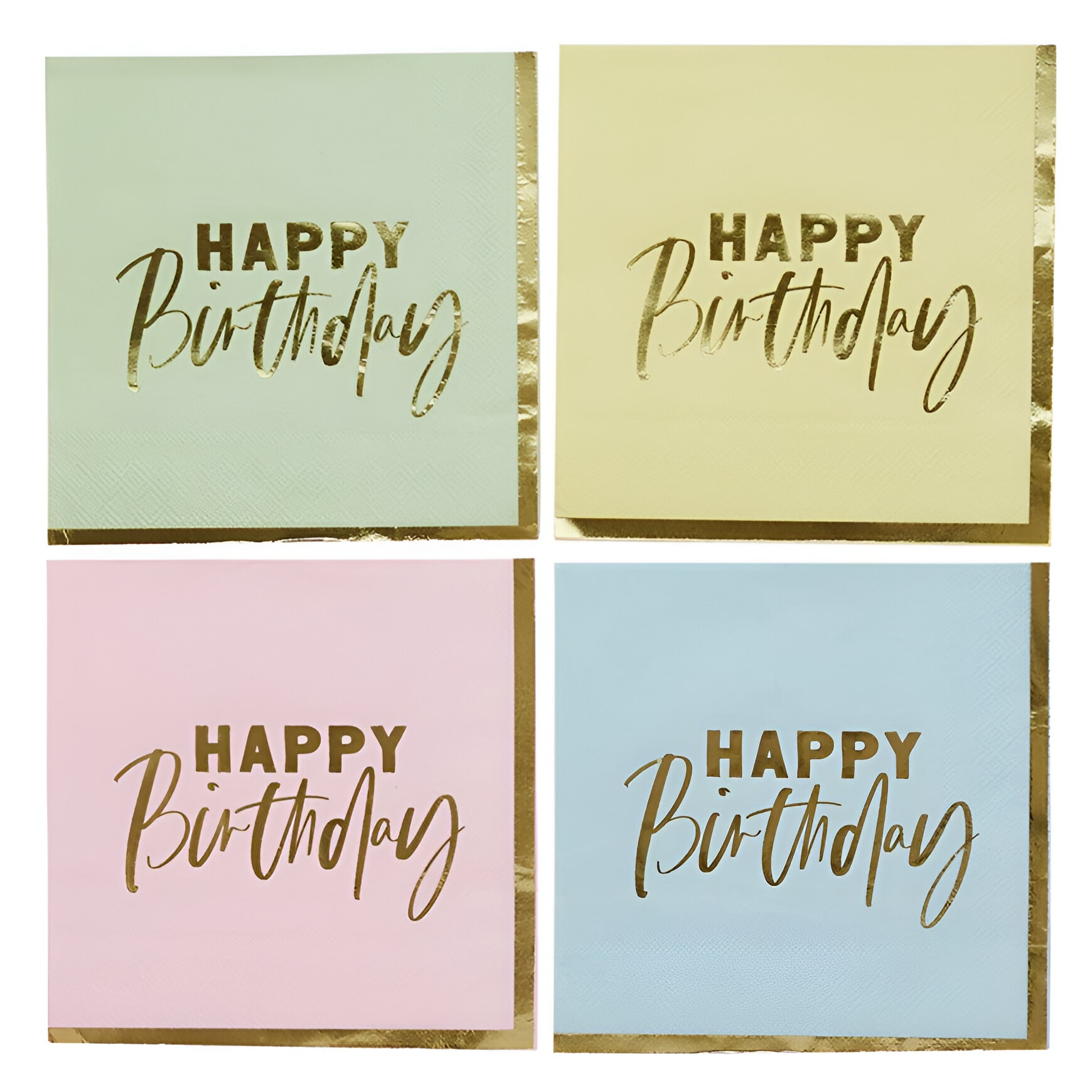 Χαρτοπετσέτες σε όμορφα παστέλ χρώματα με χρυσό περίγραμμα και μήνυμα ‘happy birthday’, για να κεραστούν οι καλεσμένοι στο πάρτυ γενεθλίων!