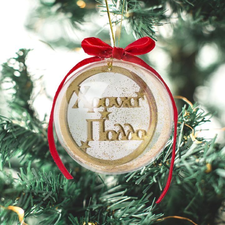Χριστουγεννιάτικη Διάφανη Μπάλα “Χρόνια Πολλά” για να χαρίσετε στους αγαπημένους σας και να τους δείξετε πόσο πολύ τους νοιάζεστε!