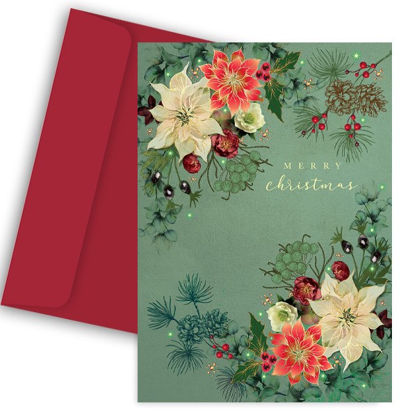 Ευχετήρια κάρτα με χριστουγεννιάτικα λουλούδια, για να ευχηθείτε στα αγαπημένα σας άτομα!