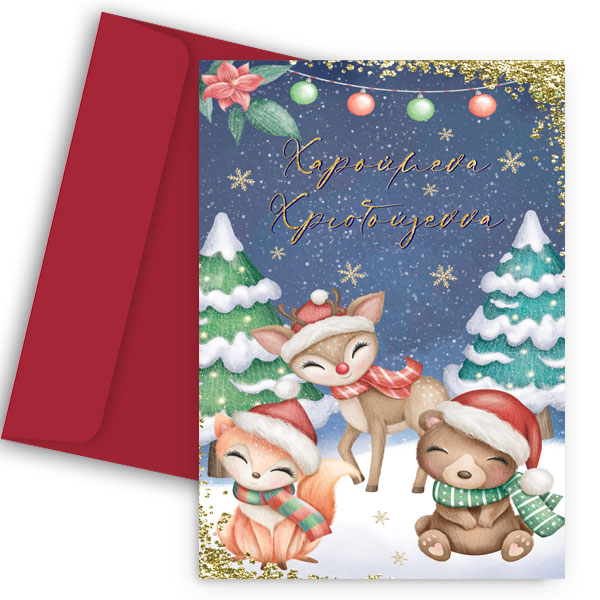 Ευχετήρια κάρτα με χαριτωμένα ζωάκια του δάσους, για να ευχηθείτε στους αγαπημένους σας για τα Χριστούγεννα!