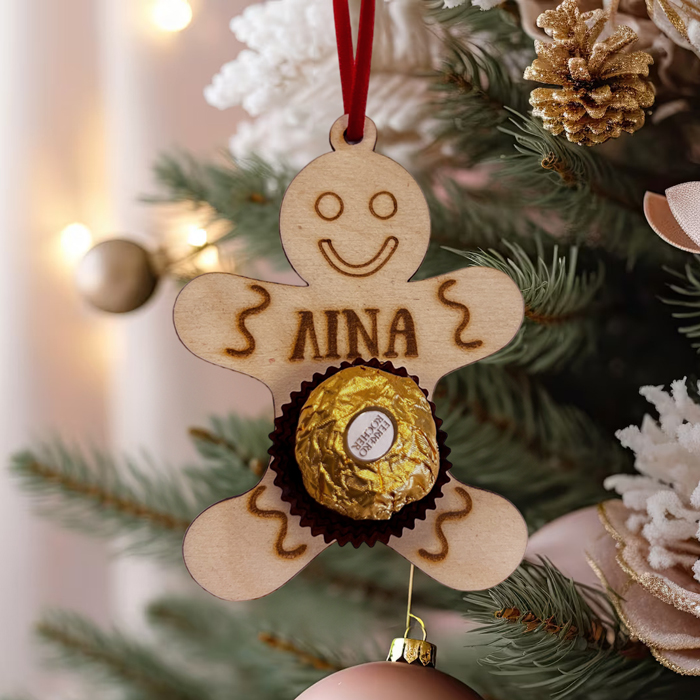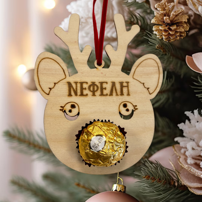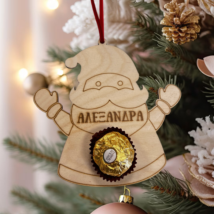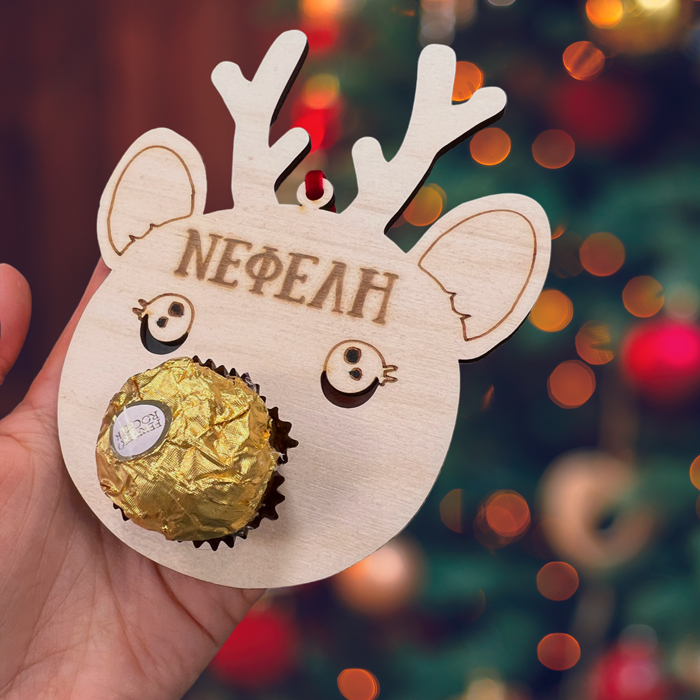 Κουτάκι με χειροποίητα στολίδια με όνομα, το κάθε στολίδι έχει το δικό του σοκολατάκι Ferrero Rocher! Δώρισε στους αγαπημένους σου ένα χριστουγεννιάτικο κουτί με στολίδια ή στόλισε με αυτά το φετινό δέντρο και μια όμορφη έκπληξη στην οικογένειά σου!