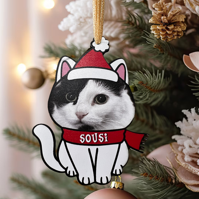 - Ξύλινο στολίδι σε σχήμα γατούλας με εκτύπωση φωτογραφίας σε υψηλή ποιότητα και όνομα