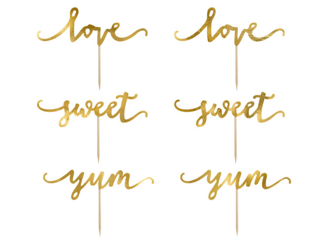 Χρυσά Cupcake toppers Love-Sweet-Yum (6 τεμ)