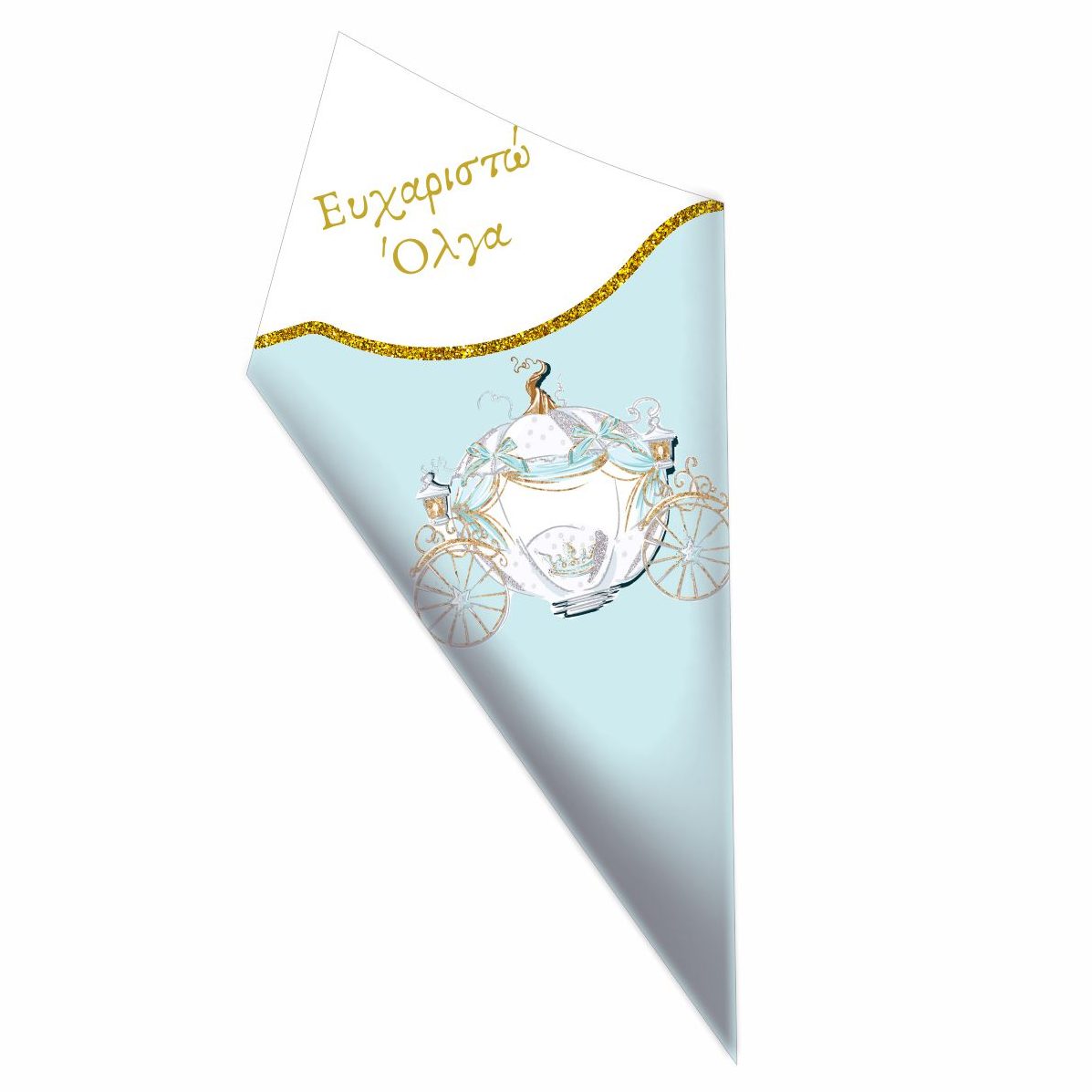 Στολίστε το candy bar ή το τραπέζι, με προσωποποιημένα χωνάκια ζαχαρωτών με θέμα την Άμαξα της Σταχτοπούτας για να κεραστούν οι καλεσμένοι σας!