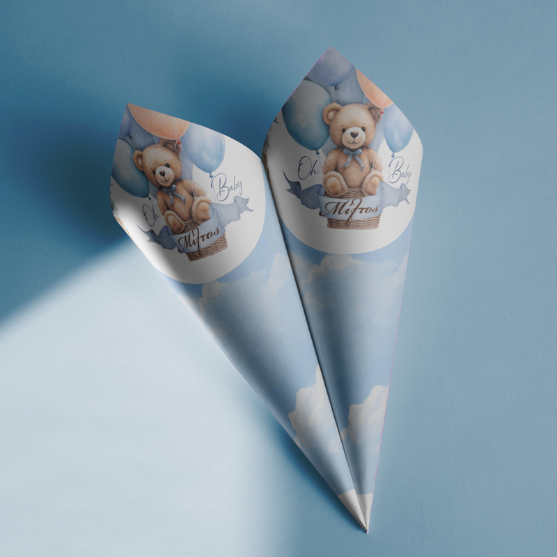 Στολίστε το candy bar ή το τραπέζι, με προσωποποιημένα χωνάκια ζαχαρωτών με θέμα Αρκουδάκι Boho για να κεραστούν οι καλεσμένοι σας!
