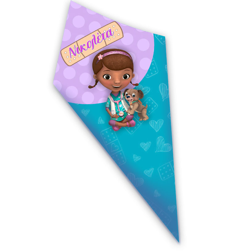 Στόλισε το candy bar ή το τραπέζι, με προσωποποιημένα χωνάκια ζαχαρωτών με θέμα τη μικρή Γιατρό, για να κεραστούν οι καλεσμένοι σου!