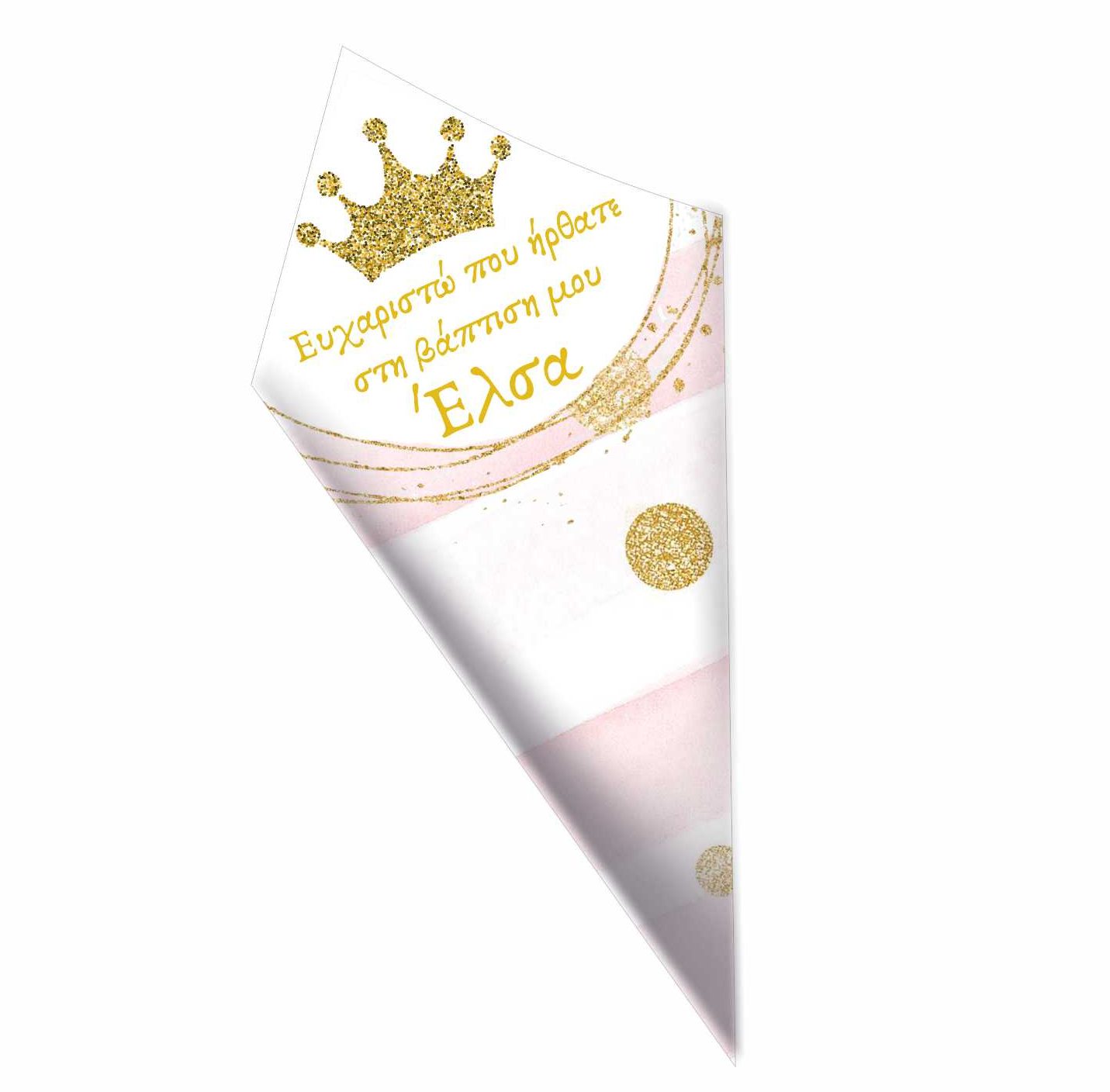 Στολίστε το μπουφέ ή το τραπέζι της βάπτισης, με προσωποποιημένα χωνάκια ζαχαρωτών με θέμα πριγκιπική Κορώνα για να κεραστούν οι καλεσμένοι σας!