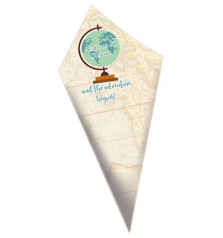 Στολίστε το candy bar ή το τραπέζι, με προσωποποιημένα χωνάκια ζαχαρωτών με θέμα τα Ταξίδια, για να κεραστούν οι καλεσμένοι σας!