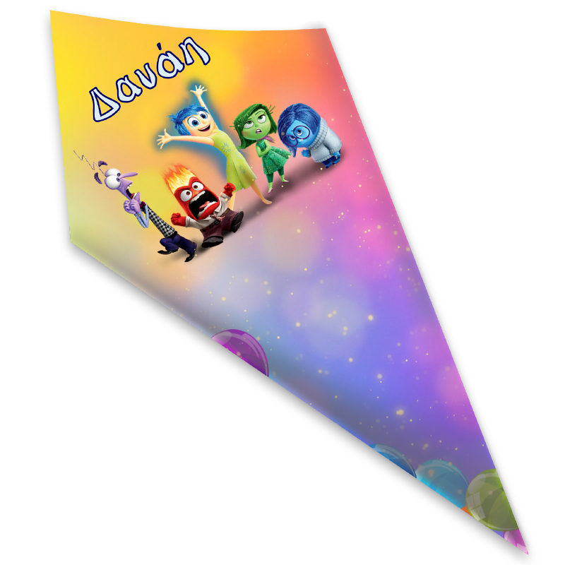 Στολίστε το candy bar ή το τραπέζι, με προσωποποιημένα χωνάκια ζαχαρωτών με θέμα Inside Out (Tα μυαλά που κουβαλάς) για να κεραστούν οι καλεσμένοι σας!