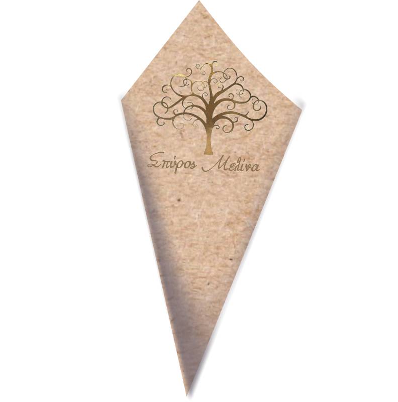 Χωνάκια ρυζιού με τα ονόματα των νεόνυμφων και σχέδιο το δέντρο της ζωής. Μοιράστε τα στους καλεσμένους σας για να σας πετάξουν το ρύζι στο γάμο!