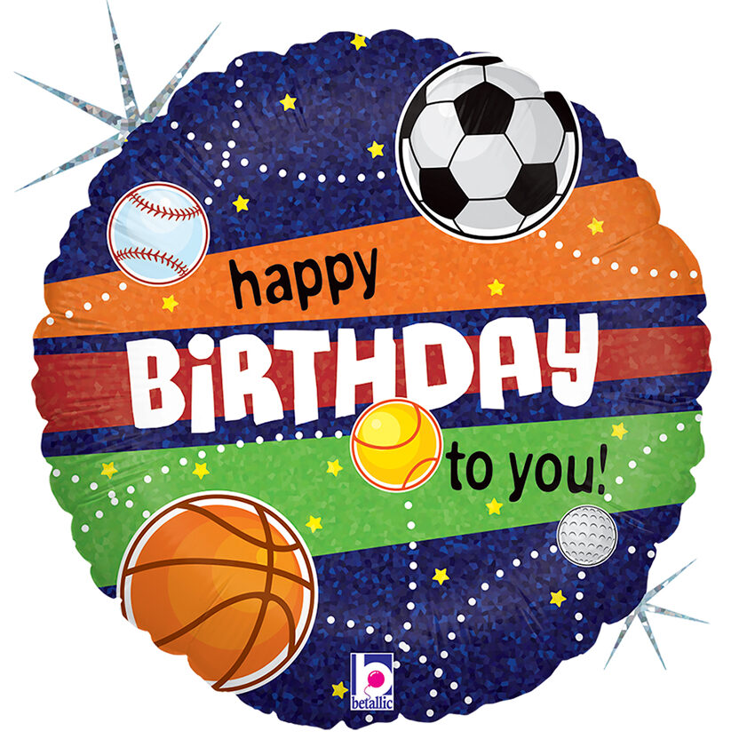 Εντυπωσιακό, foil μπαλόνι γενεθλίων Holographic με μήνυμα Happy Birthday to you και θέμα αθλήματα!