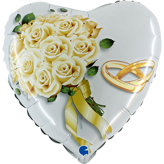 Μπαλόνι καρδιά με σχέδιο Λευκά Τριαντάφυλλα & Βέρες, για να στολίσετε όμορφα τον χώρο του γάμου σας ή να γιορτάσετε την επέτειό σας!