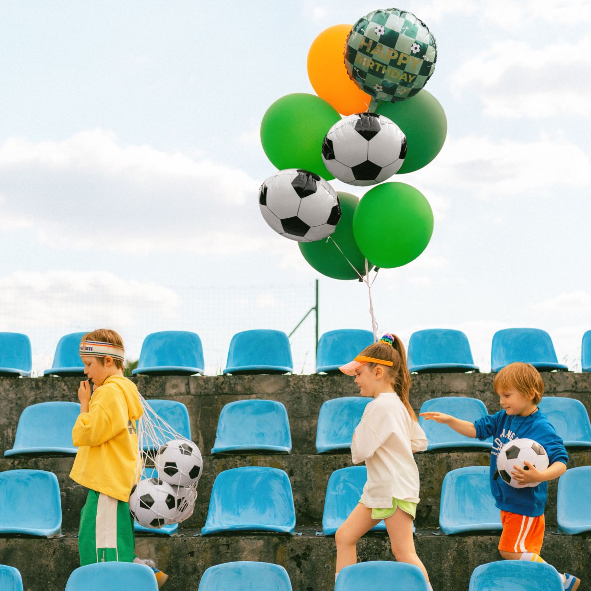 Μπαλόνι Happy Birthday με μπάλες ποδοσφαίρου, για ένα πάρτι γενεθλίων γεμάτο γκολ, παιχνίδι και χαρούμενη ατμόσφαιρα, ιδανικό για μικρούς ποδοσφαιρόφιλους!