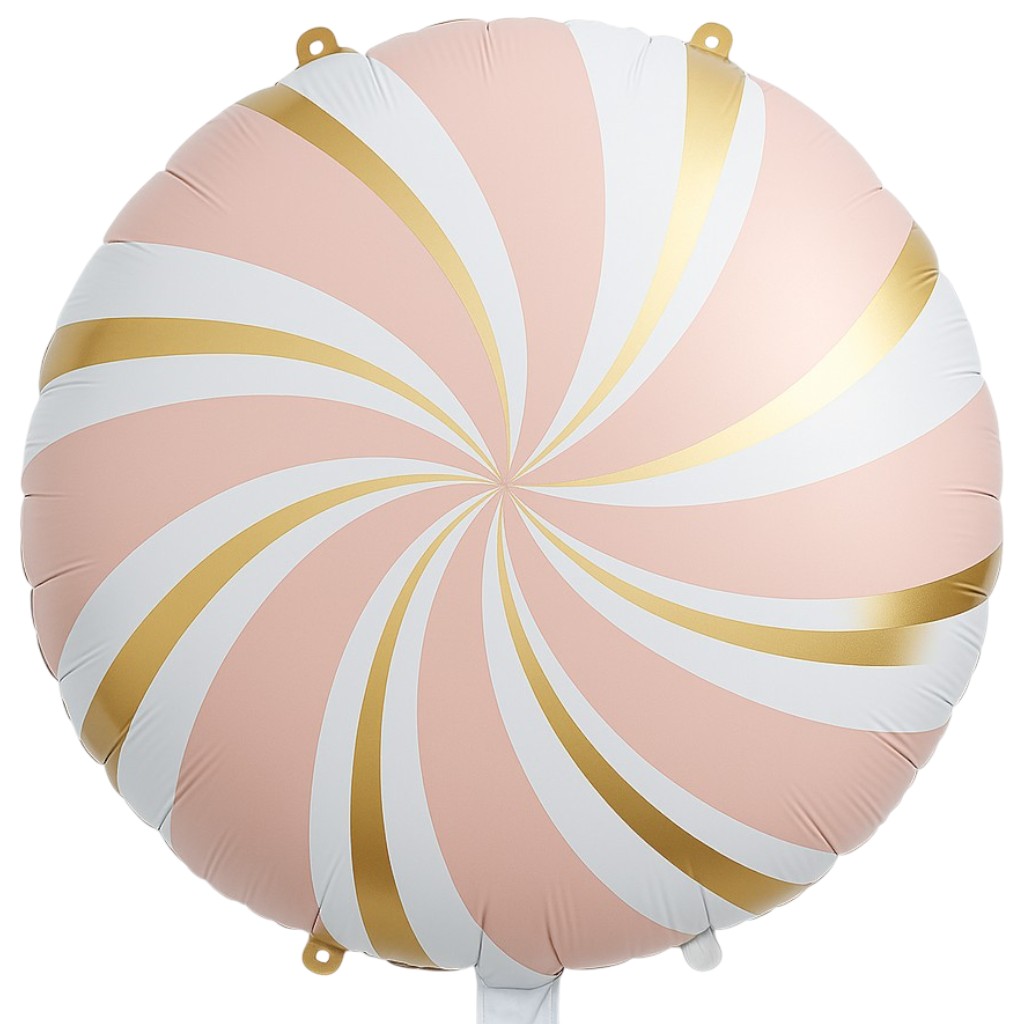 Στρογγυλό foil μπαλόνι με σχέδιο καραμέλα σε χρώματα ροζ, λευκό και χρυσό, για να διακοσμήσεις κάθε εκδήλωση!