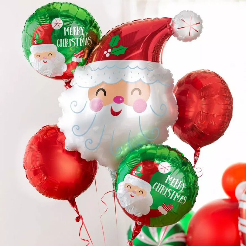 Μπαλόνι με το κεφάλι του Άι Βασίλη που γελάει γλυκά, έτοιμος να διακοσμήσει τον χώρο σου τις γιορτές!