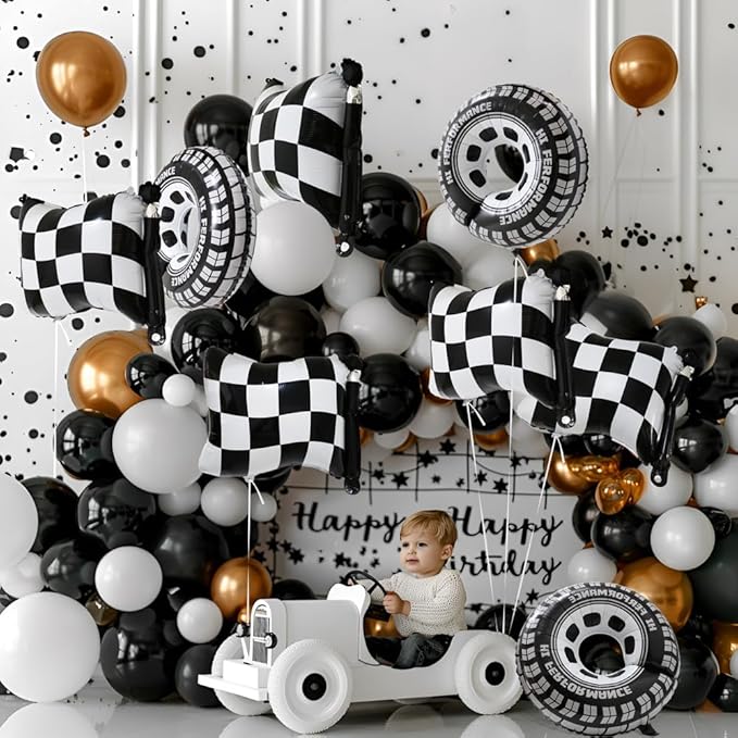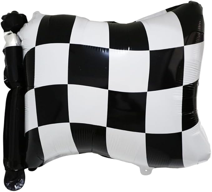 Μπαλόνι καρό αγωνιστική σημαία, με δυναμικό ασπρόμαυρο σχέδιο. Ιδανικό για θεματικά πάρτι αγώνων, γενέθλια και διακόσμηση που αποπνέει ταχύτητα και ένταση!