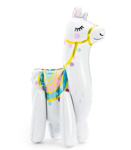 - Ματ, foil μπαλόνι Llama σε λευκό χρώμα με πολύχρωμο print